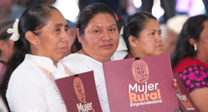 Altamirano Pérez informó que durante el acto también fueron beneficiadas 47 mujeres a través del Programa Mujer Rural Emprendedora, quienes desarrollarán proyectos productivos, como artesanías y textiles y generarán riqueza comunitaria.