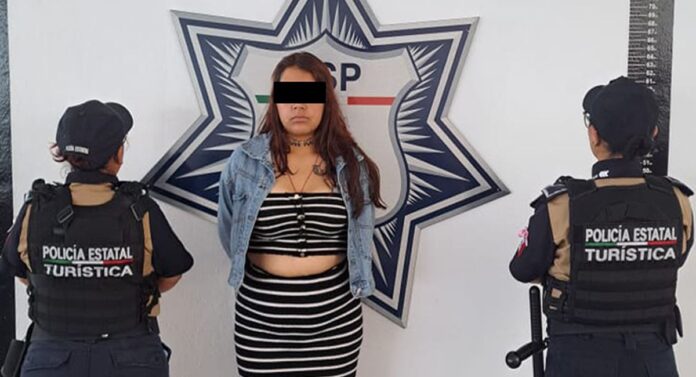 La acción que tuvo en el paradero “San Francisco”, de la Línea 3 de la Red Urbana de Transporte Artículo (RUTA), permitió a la Policía Estatal Turística detener a Tabata N., de 22 años.