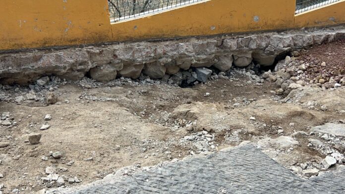 Hay que destacar que se observa como las losas se encontraban “volando” ya que no había tierra que sostuviera las mismas, por lo que hoy parte de los trabajos es ese, llenar estos espacios con tierra para evitar que las ardillas corran por la zona, provocando afectaciones.
