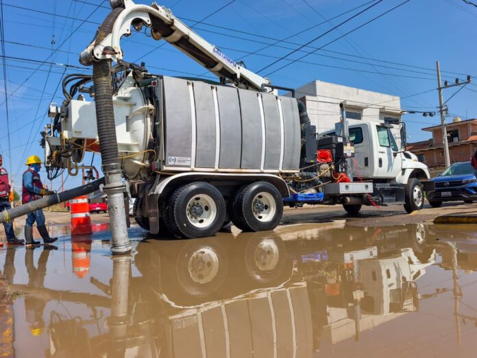 Durante la jornada, se realizaron trabajos de limpieza, desazolve y revisión del sistema de alcantarillado, además de la intervención en rejillas pluviales en distintos puntos, con el objetivo de mejorar el flujo del agua y prevenir encharcamientos e inundaciones.